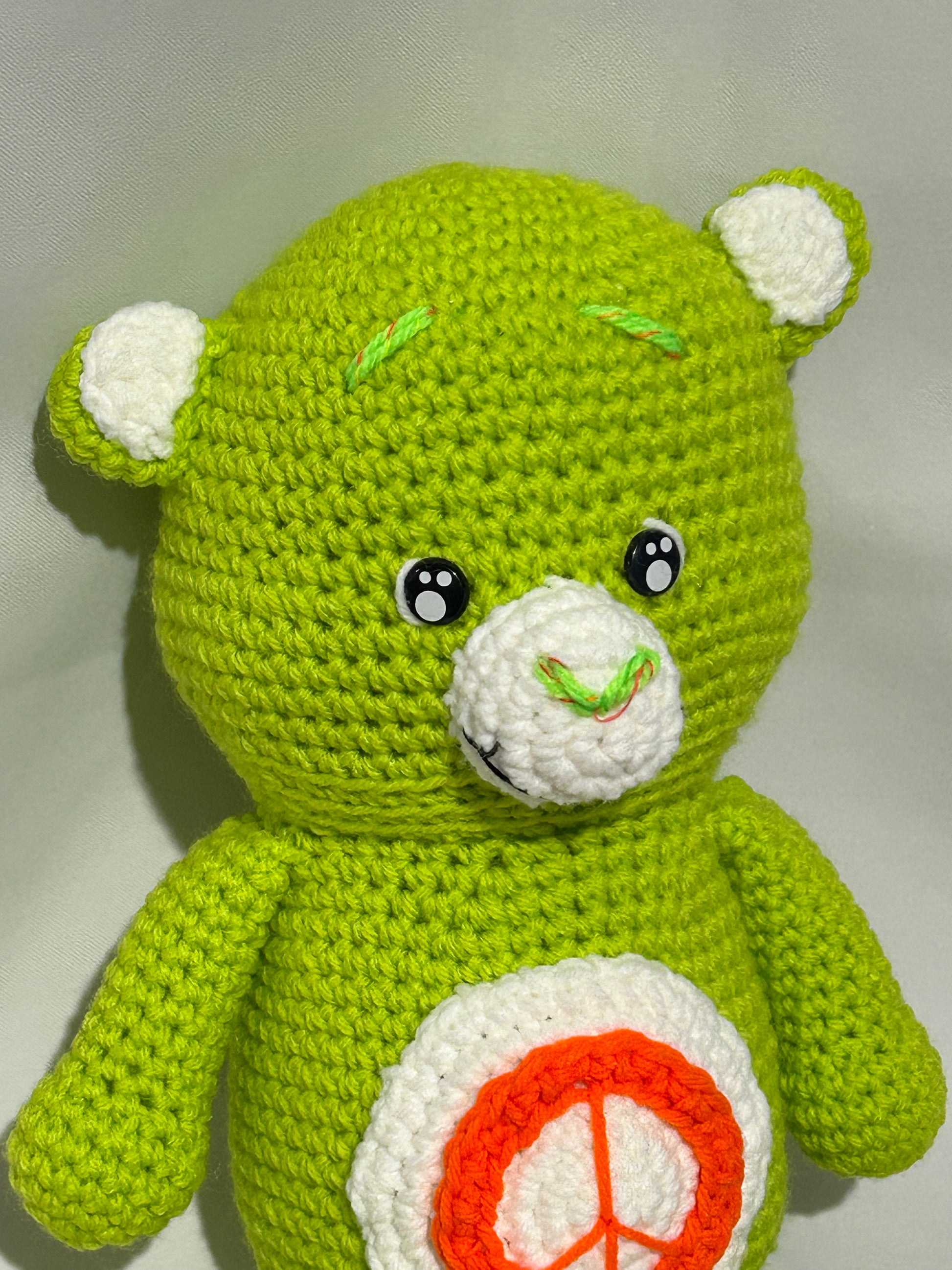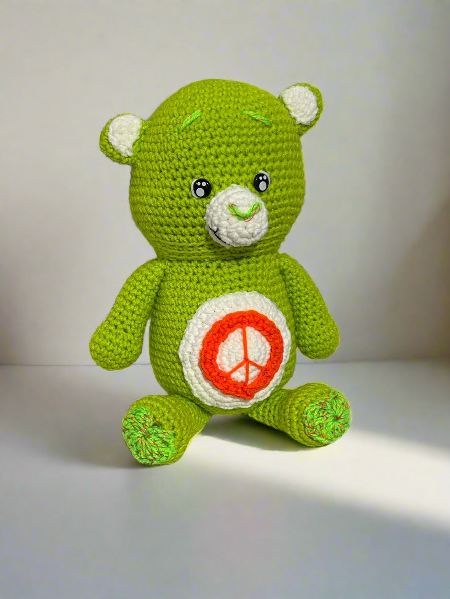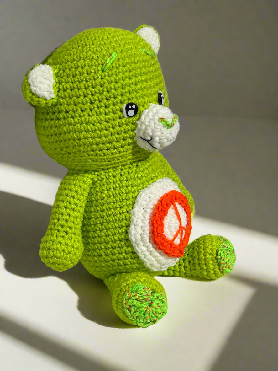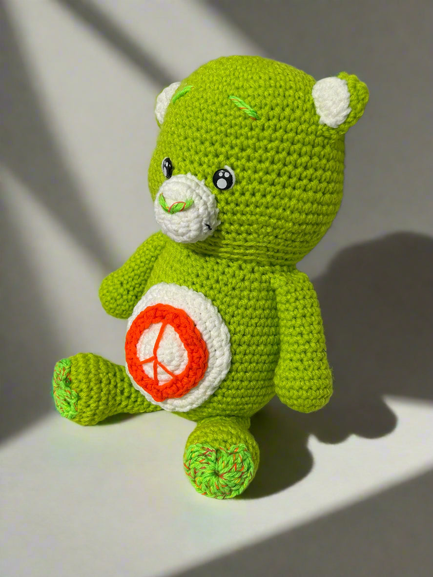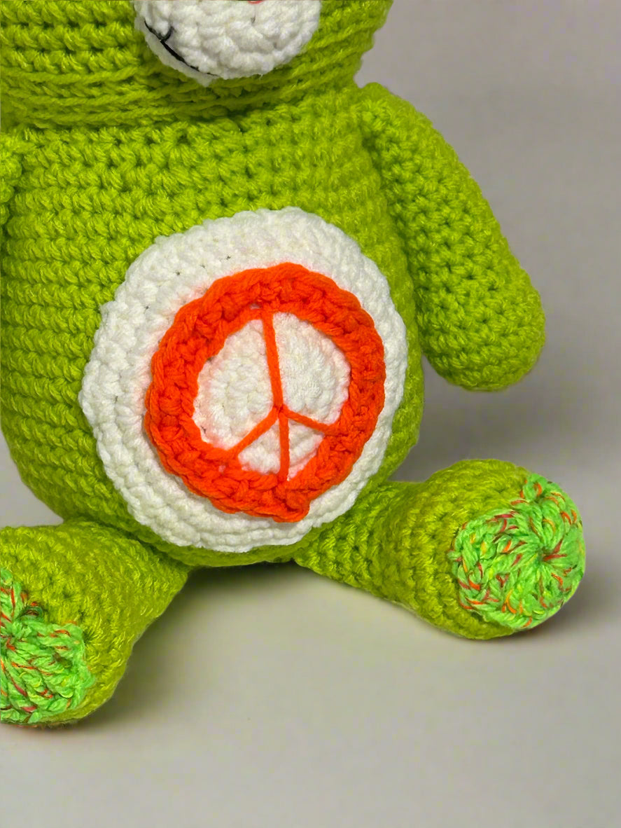 Bring home the Give Peace a Chance Bear, a cuddly handmade crochet treasure full of charm and warmth. This playful bear is perfect for snuggling, crafted with care to spread peace and smiles. Soft, unique, and ready for endless hugs, it’s the perfect companion to brighten any day with a touch of handmade love. (Measuring 11.5" this bear is lovingly handmade, making each one very similar but delightfully unique!)
