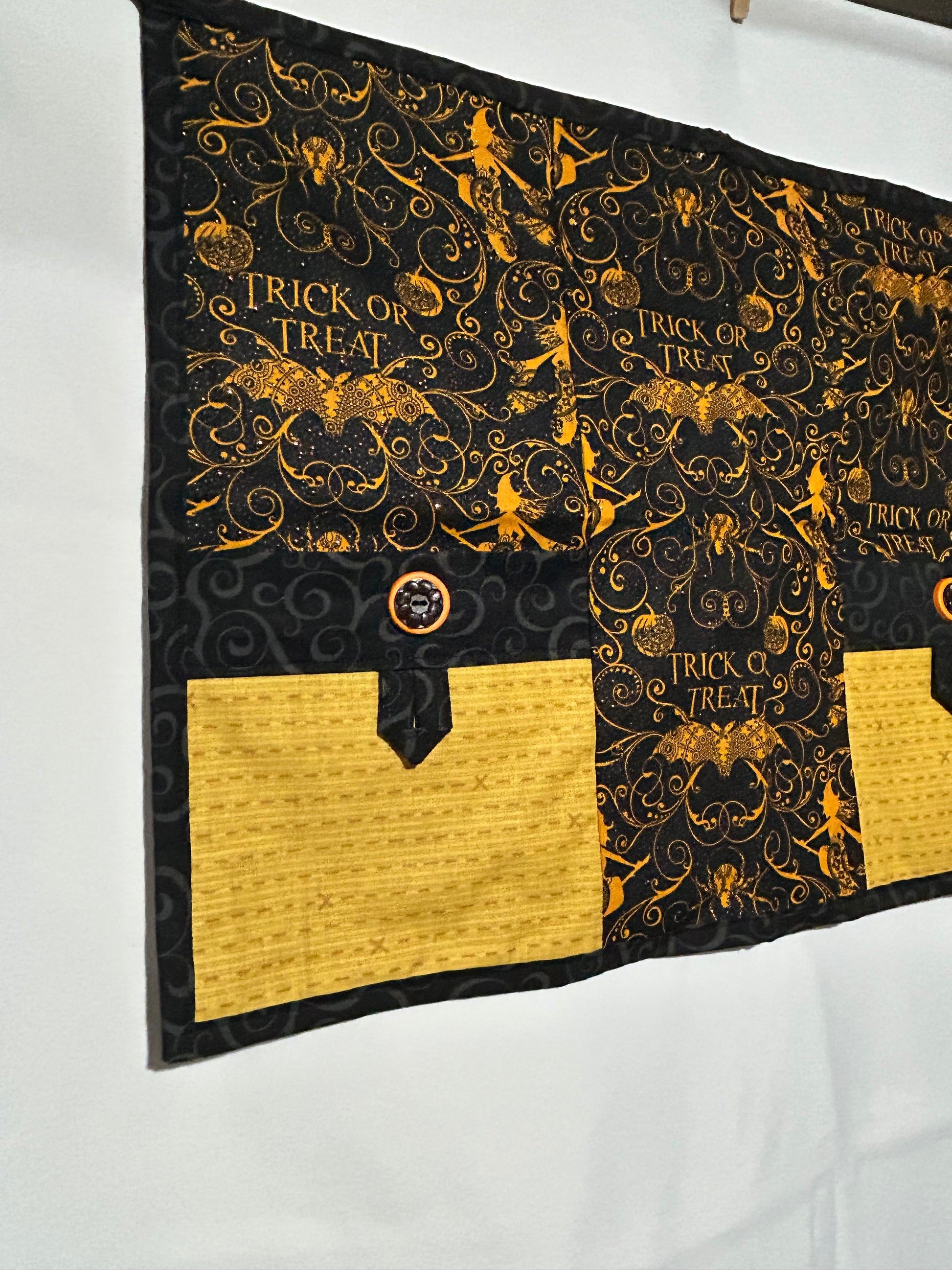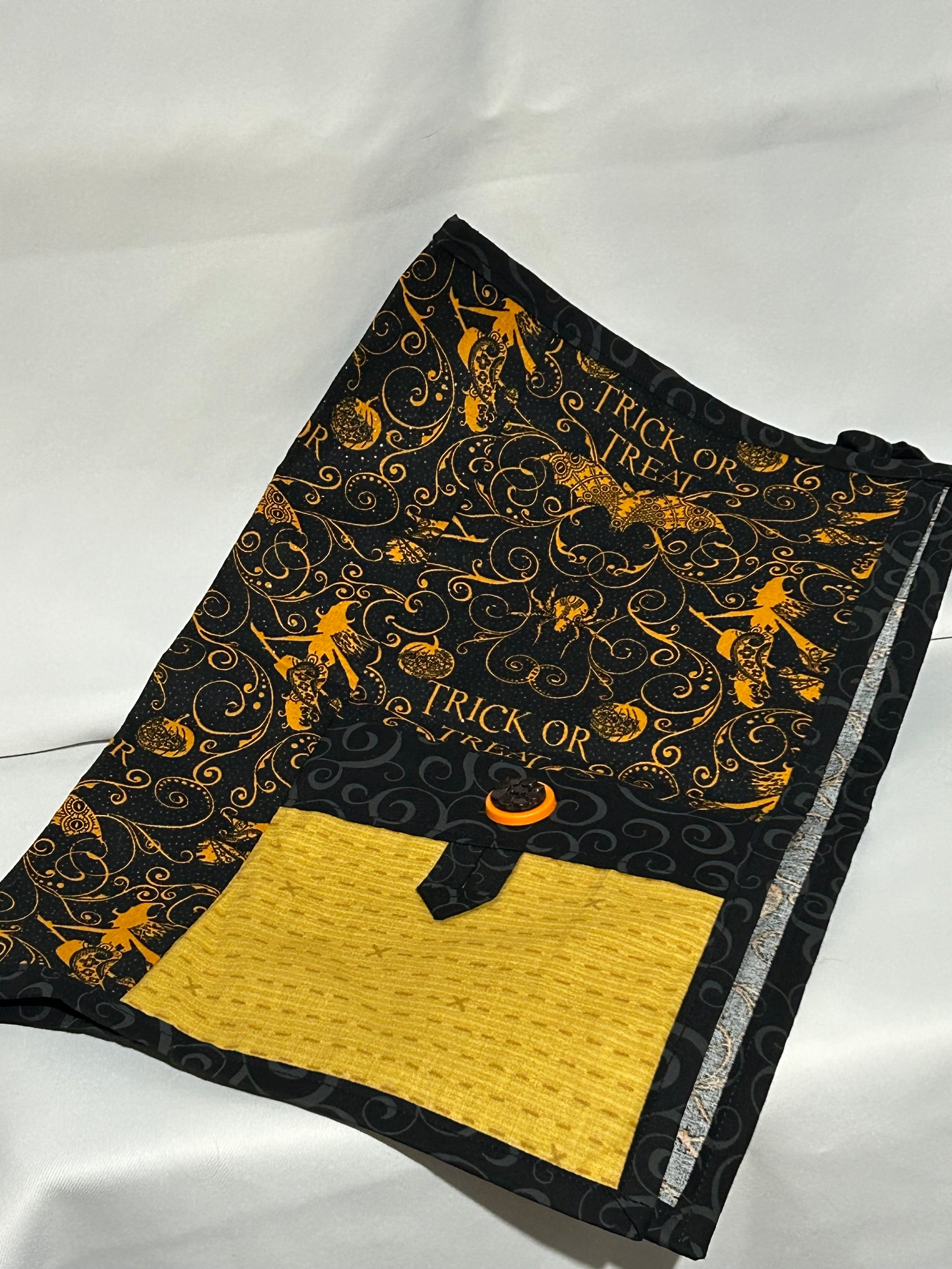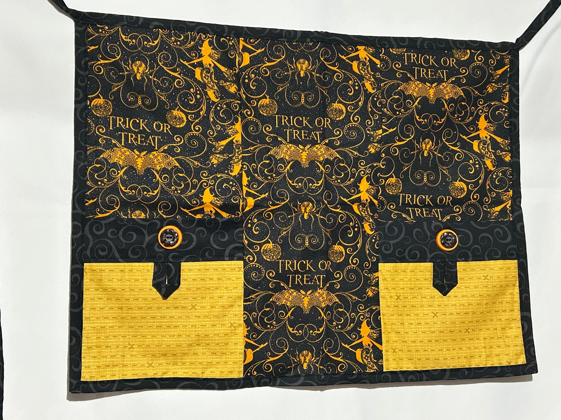 Halloween Theme Half Apron-Yellow/Black Pockets