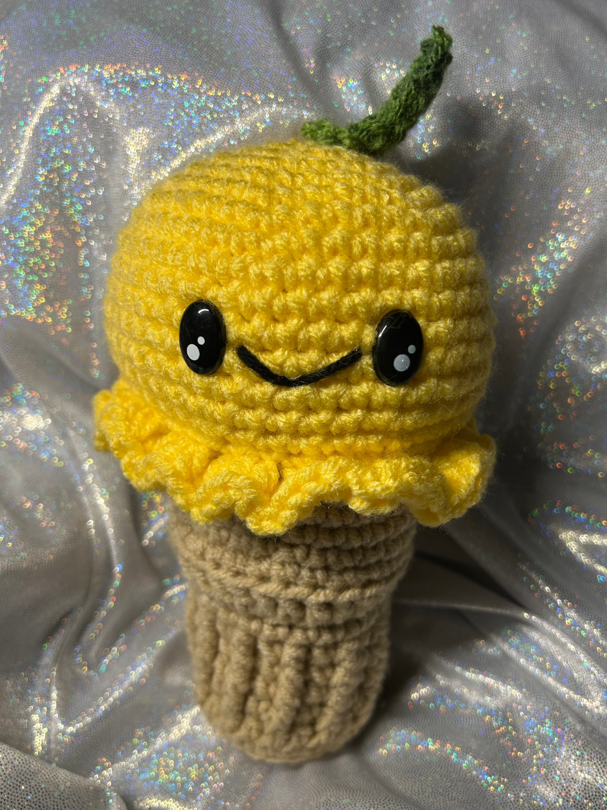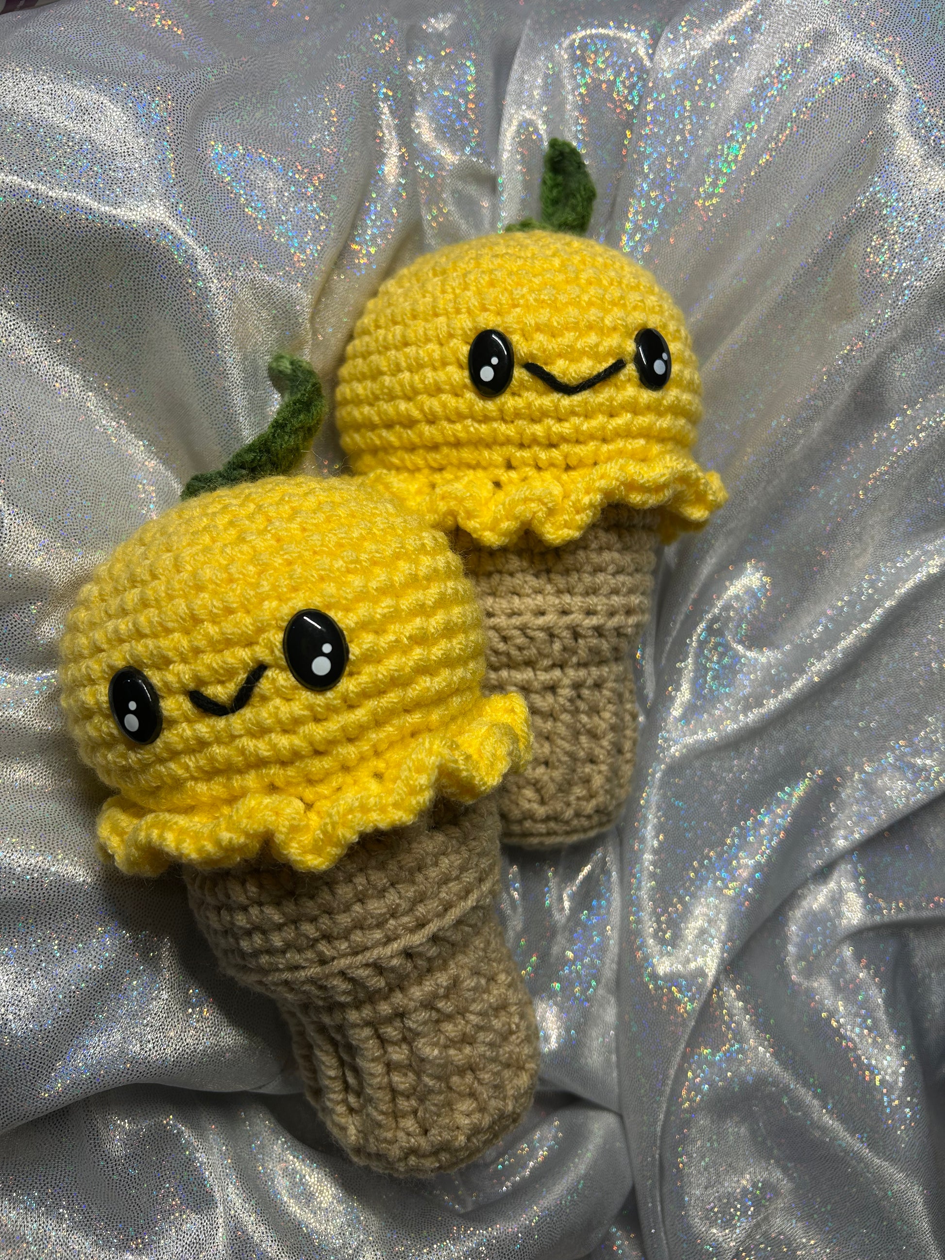 Brighten up any day with this playful handmade lemon ice cream cone crochet! Soft, charming, and bursting with sunny yellow hues, it’s the perfect whimsical touch for your decor or a fun gift. Crafted with care, this sweet treat never melts and always brings a smile. (measures: 7.5")